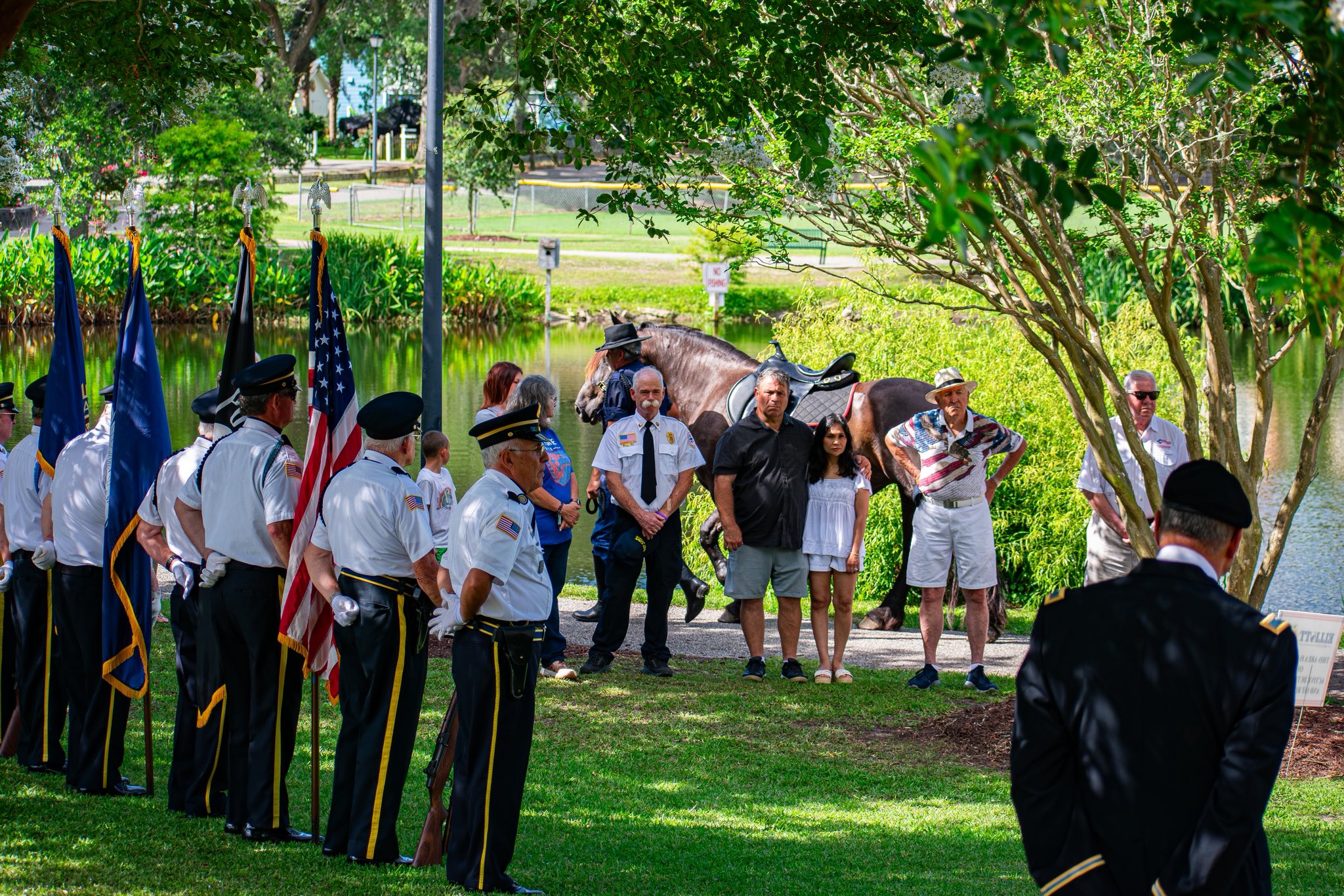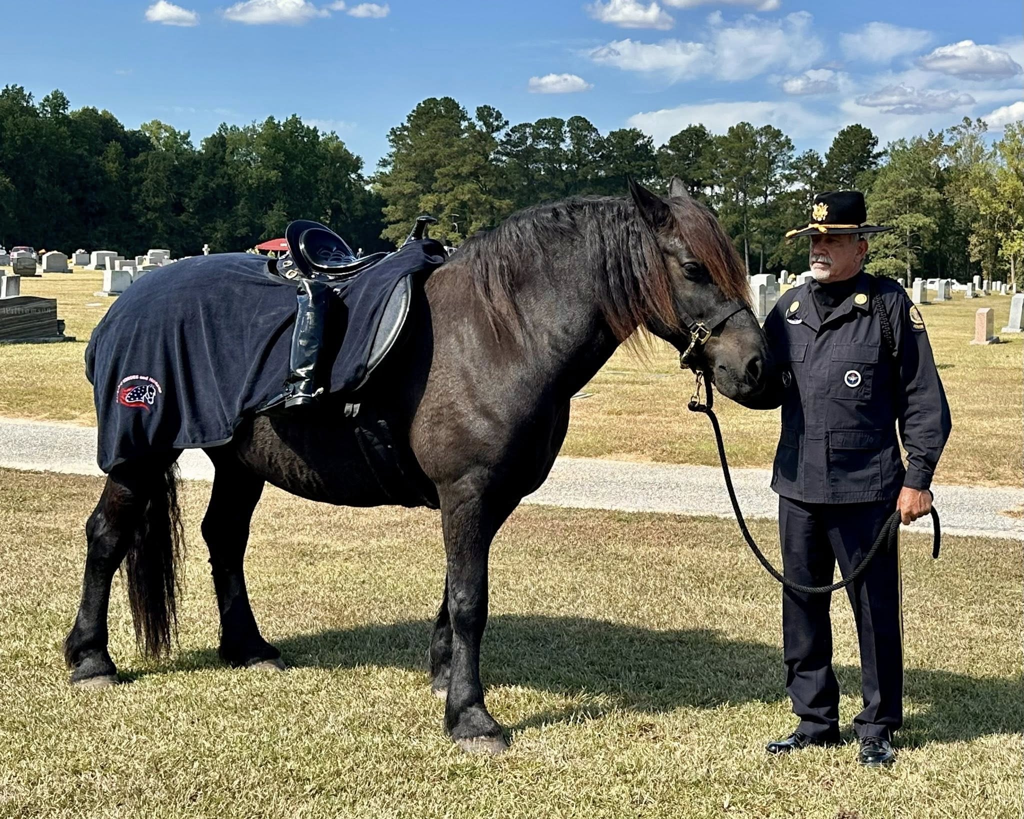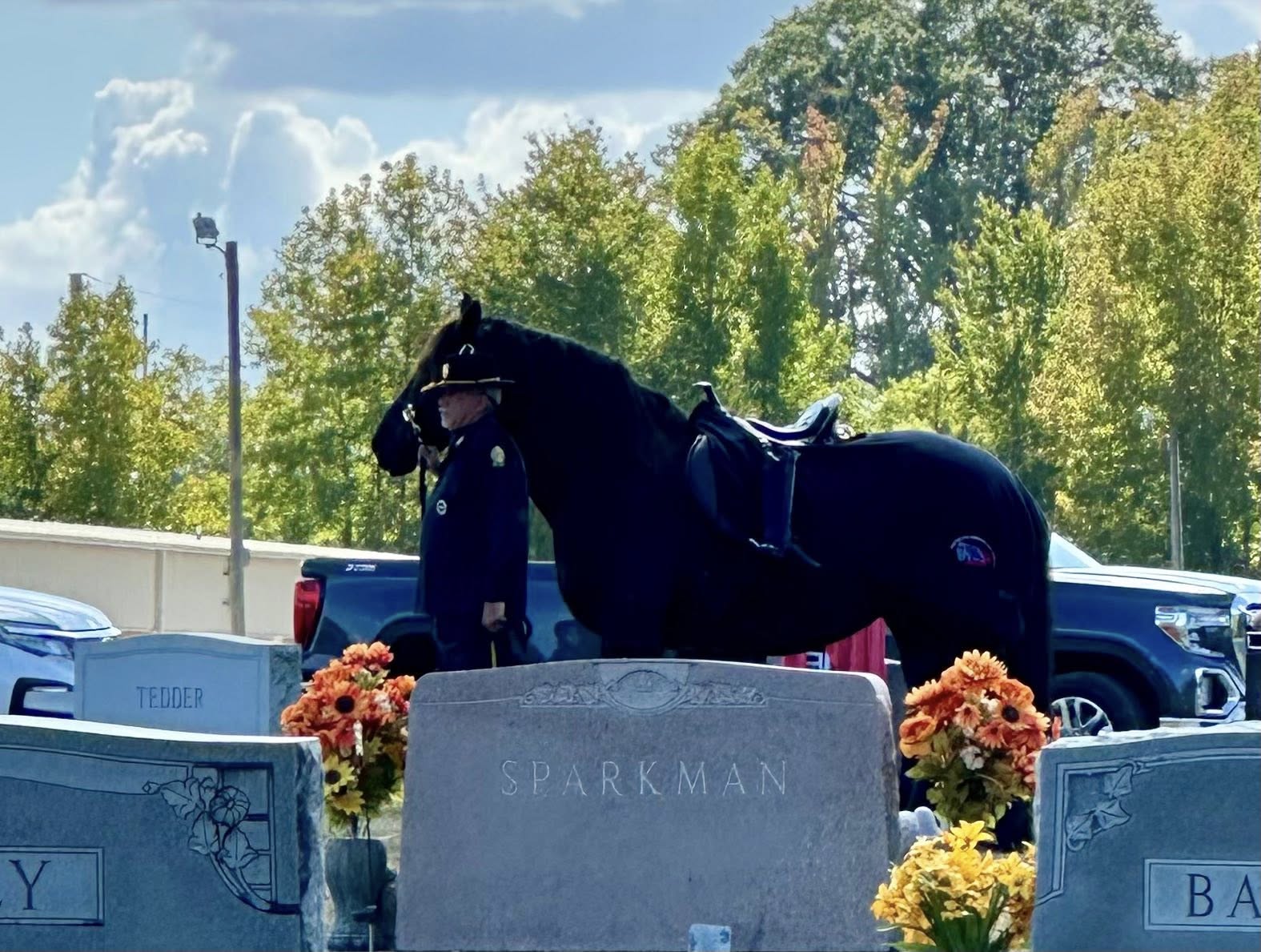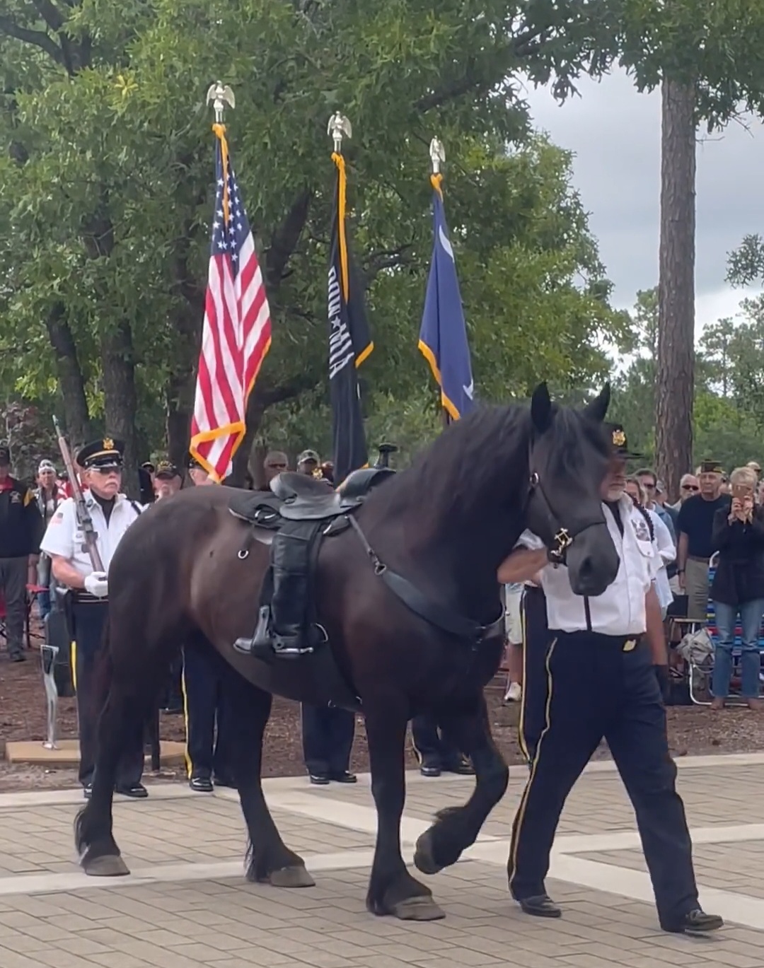 Patriots Heroes and Horses is proud to offer the Caparisoned Horse, also known as the ceremonial Military Riderless Horse for the funeral procession of the fallen military, military veterans or our Emergency Services Personnel. With the large number of prior military, we found that funeral homes were having trouble finding ways to honor the fallen. Patriots Heroes and Horses will honor the fallen with their specially trained military style horses using a similar ceremonial style as the U.S. Army Old Guard.