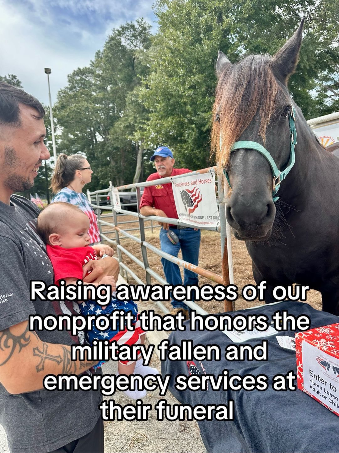 We are raising awareness of our nonprofit that benefits communities by honoring the military fallen and emergency services at their funeral from Raleigh NC to Charleston SC and to the west. We all owe our freedom to the military and some owe their lives to emergency services personnel. Patriots Heroes and Horses really does make a difference at their funerals. Not only do we honor and show respect for their sacrifices but it also helps the grieving family, friends and community.