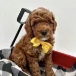 Our Doodle Family consists of Goldie Mae. Goldie Mae is a petite golden doodle. She and Duncan, the AKC red mini poodle have the cutest and sweetest petite golden doodles. Contact us to get on the waiting list.