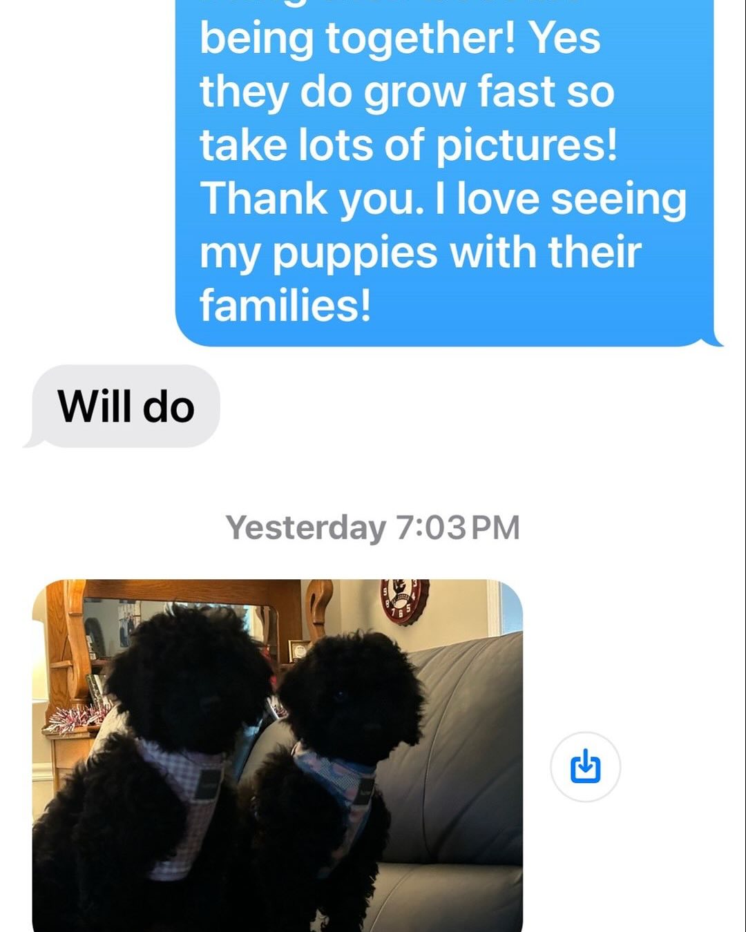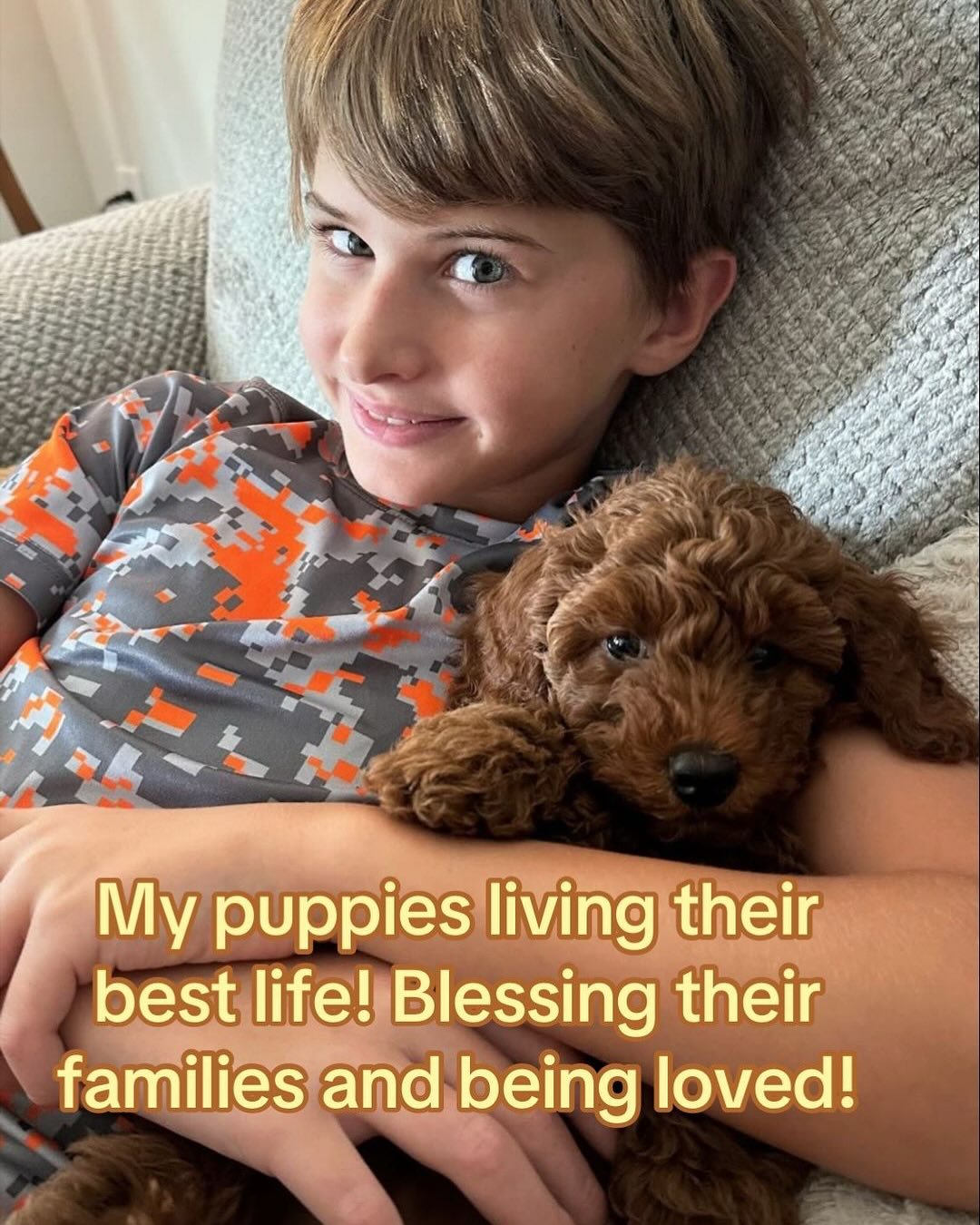 We are overwhelmed at how many of our puppy families have LOVED our AKC Red, Black and Abstract Mini Poodles and Petite Golden Doodles! I love getting pictures from past clients and seeing how the puppies are blessing their lives! Just warms my heart!